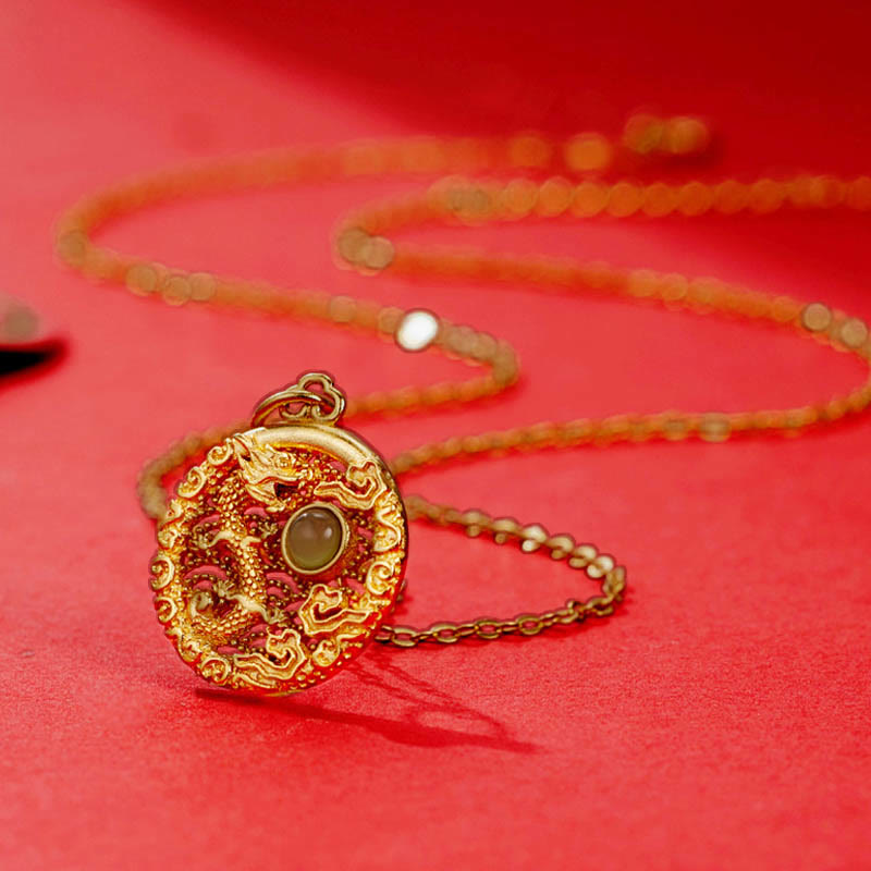 Buddha Stones 925 Sterling Silver Year Of The Dragon Auspicious Clouds Hetian Jade Inlaid Luck Necklace Pendant - Dragon(Protection♄Success) - image 0