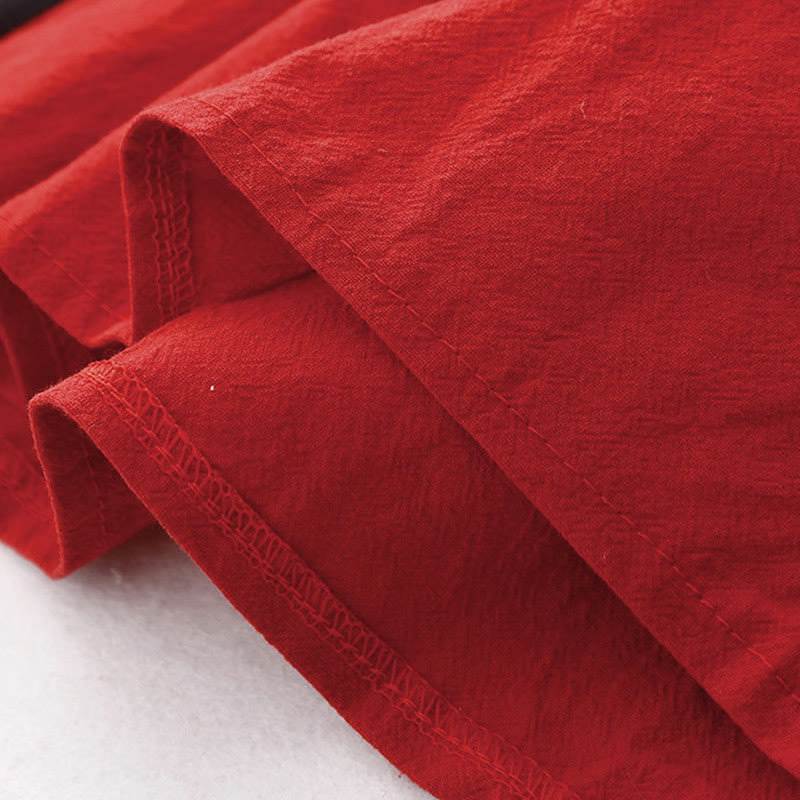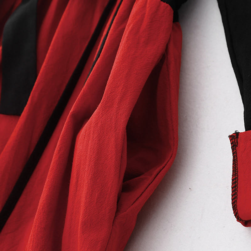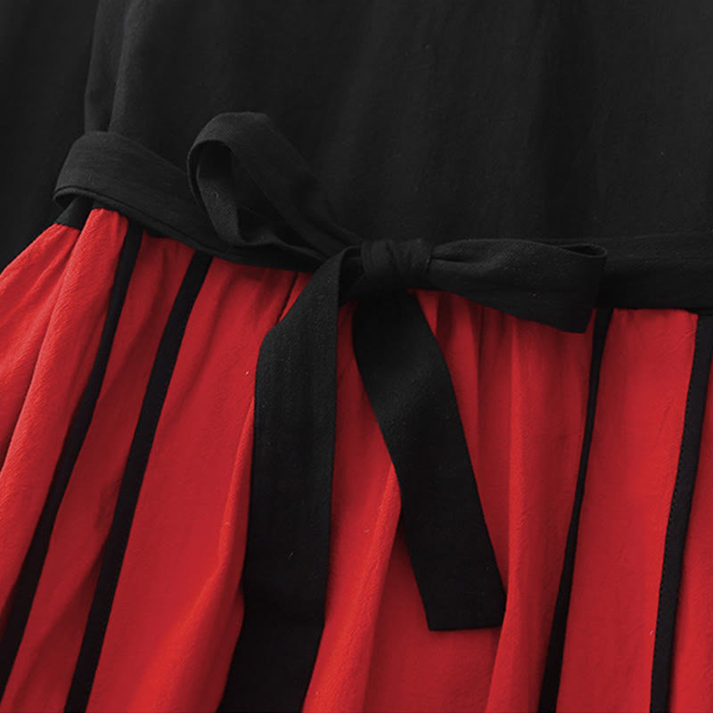 Buddha Stones Color Block Lace-Up Desgin Women's Long Sleeve Midi Dress With Pockets - Crimson - US8-10,UK/AU12-14,EU40-42 (2XL) - image 0
