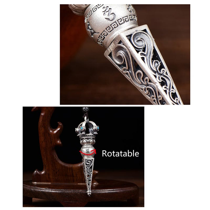 Buddha Stones Tibetan Om Mani Padme Hum Dorje Vajra Design Wisdom Rotatable Necklace Pendant - Dorje Vajra Design - image 1