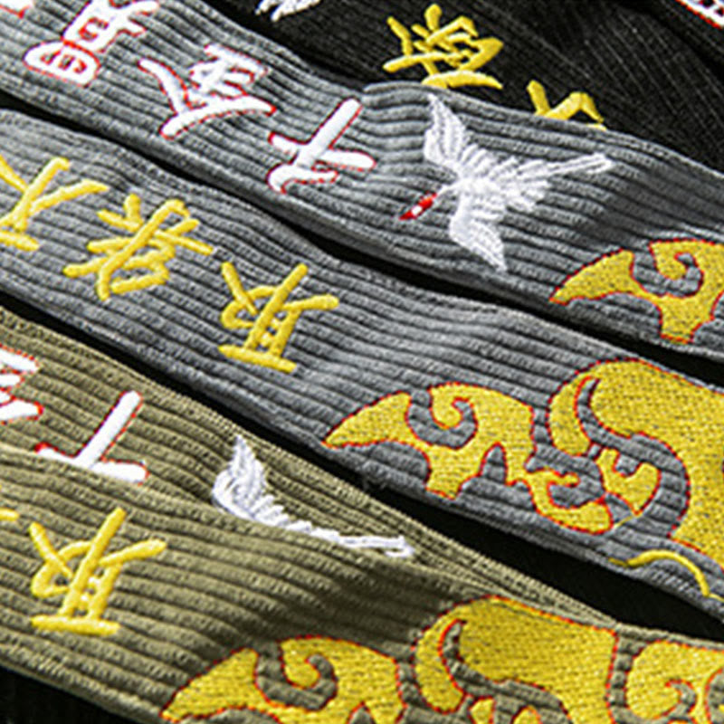 Buddha Stones Fall Winter Lace-up Chinese Character Embroidery Men's Corduroy Pants With Pockets