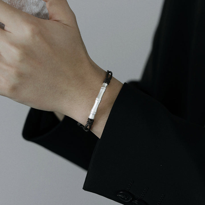 Buddha Stones 999 Sterling Silver Bone Pattern Luck Rope Braided Bracelet