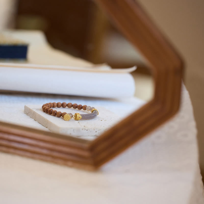 - Material: Sandalwood, Gray Agate, Chalcedony, 925 Sterling Silver Gold Plated