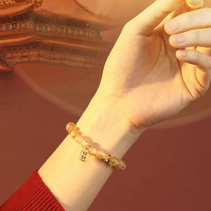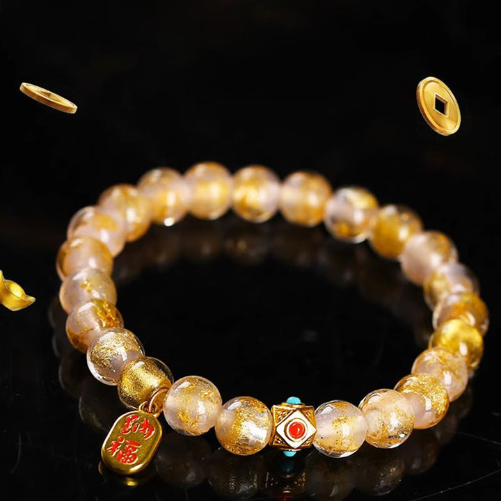 Buddha Stones Tibetan Incense Ash Liuli Glass Bead Lucky Fortune Fu Character Charm Bracelet