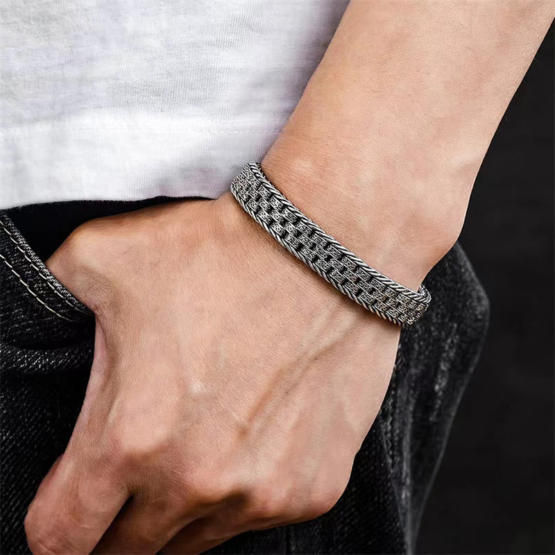 Buddha Stones Tibetan Om Mani Padme Hum Tang Dynasty Flower Design Copper Peace Chain Bracelet