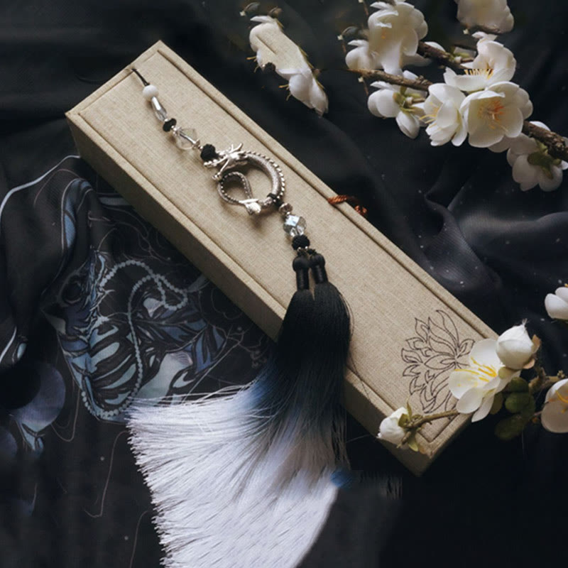 - Material: Rice Paper, Bamboo, Tassels, Single-Sided Alloy Dragon, Crystal Beads