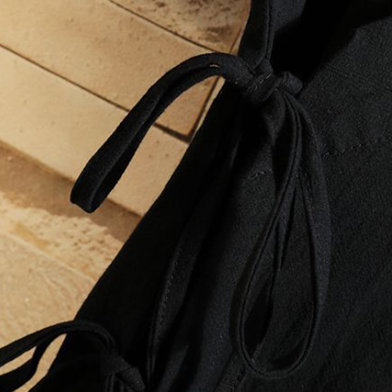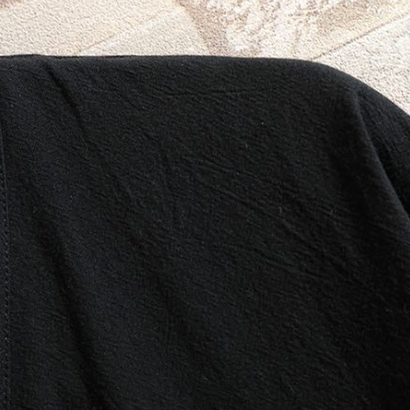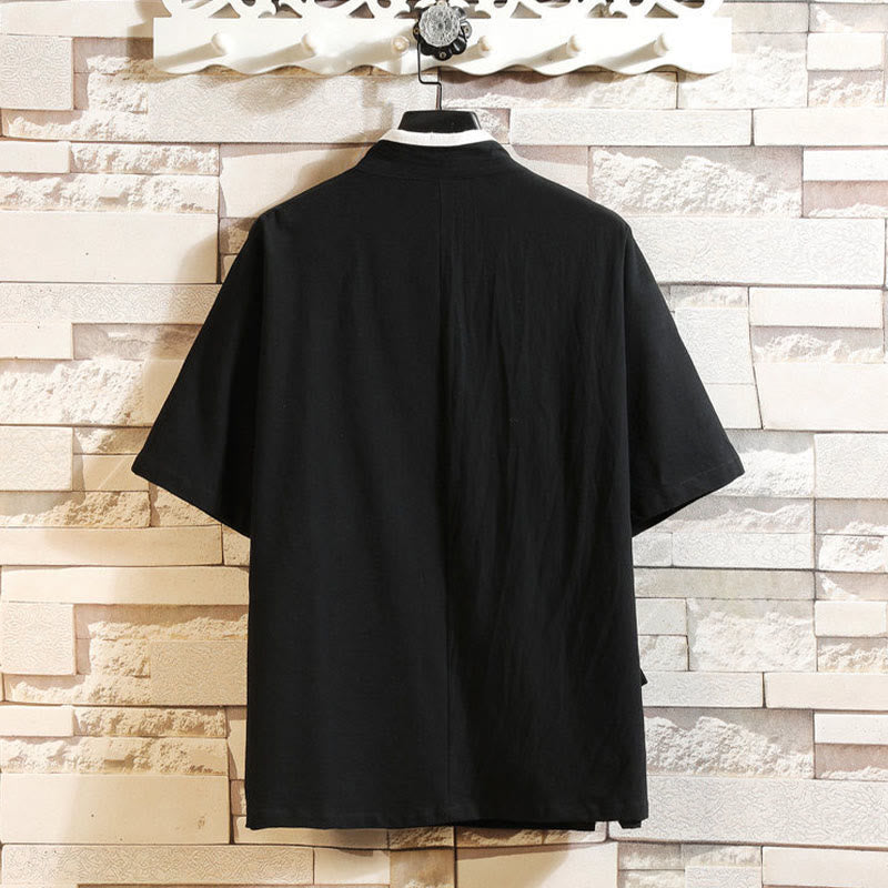 Buddha Stones Embroidered Crane Auspicious Cloud Pattern Open Front Short Sleeve Jacket Men's Cotton Kimono