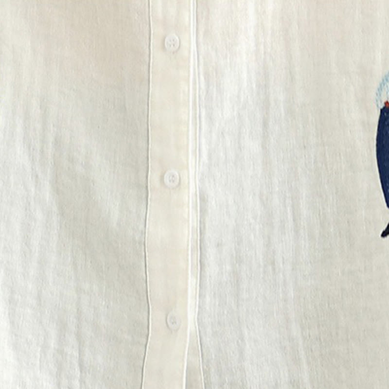 Buddha Stones Fall Embroidery Human Figure Dog Pattern Round Neck Buttons Women's Long Sleeve Shirt - White - US14,UK/AU18,EU46 (2XL) - image 7