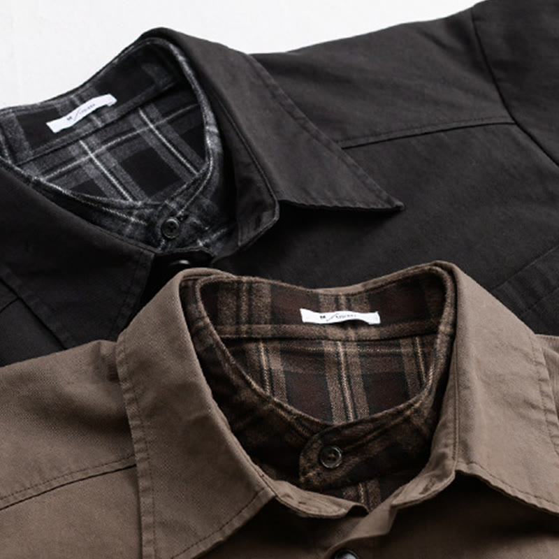 Buddha Stones Spring Plaid Pattern Fake Two-piece Long Sleeve Men's Cotton Jacket With Pocket - SaddleBrown - US/UK/AU42,EU52 (3XL) - image 10