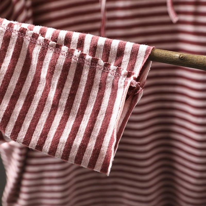 Buddha Stones Spring Striped Pattern Long Sleeve Women's Cotton Hoodie - DarkRed - US4-8/10,UK/AU8-12/14,EU36-40/42 (F) - image 2