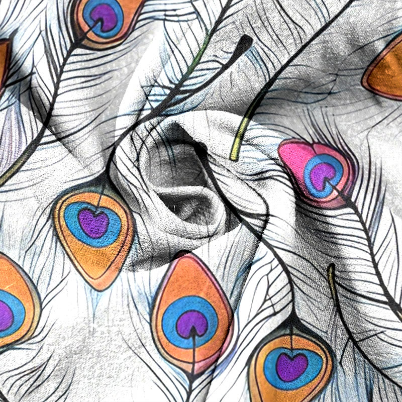 - Design: The peacock feather patterns hold profound symbolic meaning rooted in global cultural traditions. The peacock feather represents beauty, renewal, and self-expression, embodying confidence and the celebration of one’s unique radiance. In many traditions, it also symbolizes wisdom, protection, and spiritual awakening, seen as a bridge between earthly grace and higher consciousness. Together, these patterns honor the elegance of individuality and the timeless allure of natural splendor.
