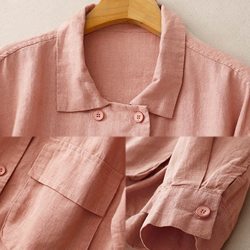 Buddha Stones Double‑Breasted Design Long Sleeve Women's Cotton Jacket With Pockets - image 10