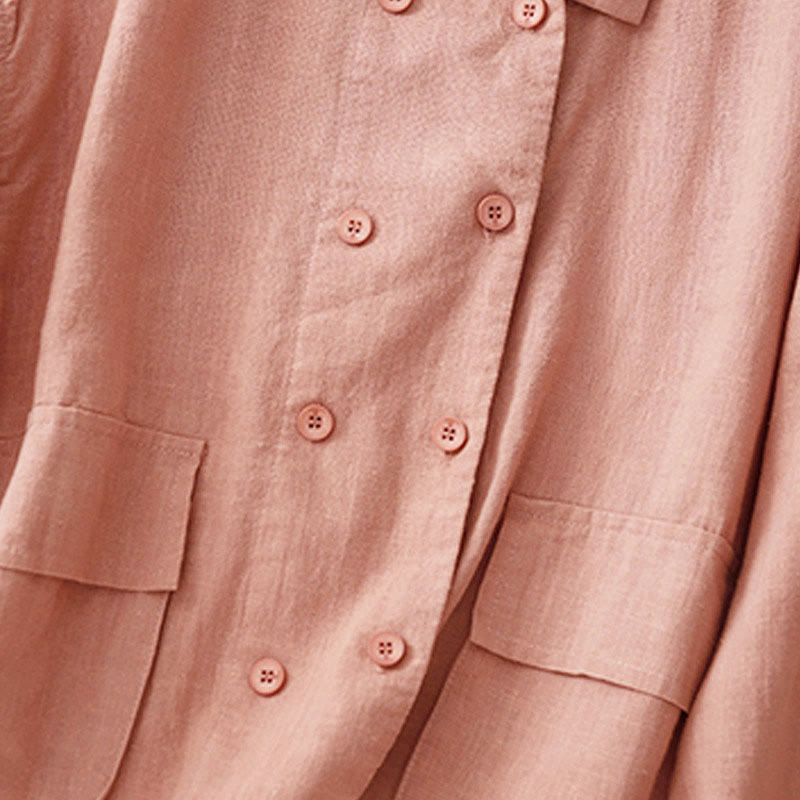 Buddha Stones Double‑Breasted Design Long Sleeve Women's Cotton Jacket With Pockets - DarkSalmon - US14,UK/AU18,EU46 (2XL) - image 17