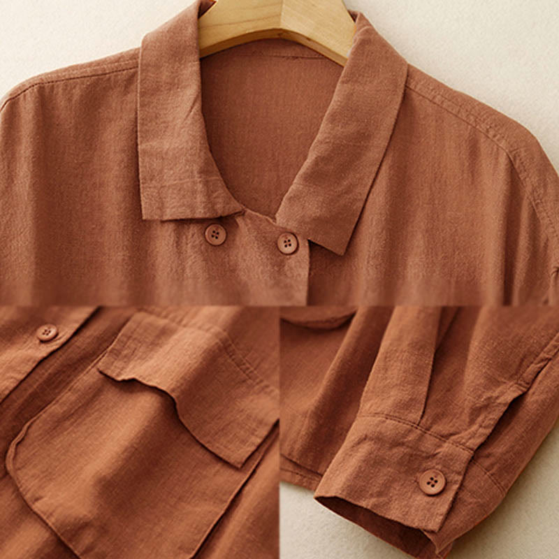 Buddha Stones Double‑Breasted Design Long Sleeve Women's Cotton Jacket With Pockets - Chocolate - US14,UK/AU18,EU46 (2XL) - image 7