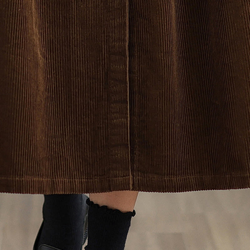 Buddha Stones Plain Buttons Long Sleeve Women's Cotton Corduroy Coat With Pockets - SaddleBrown - US12,UK/AU16,EU44 (2XL) - image 0
