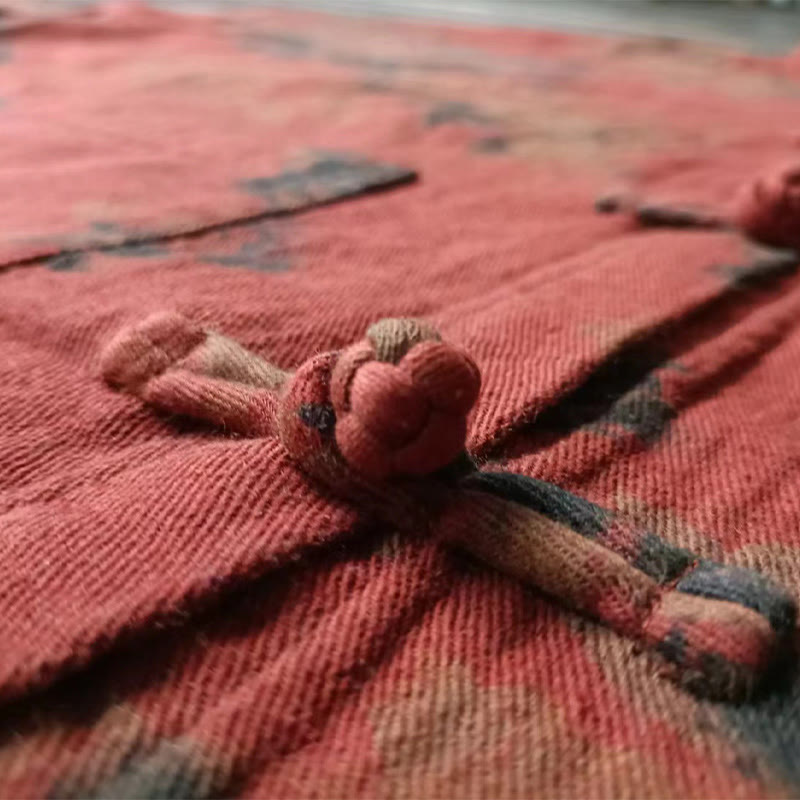 Buddha Stones Orange Peony Flower Cotton Linen Frog-Button Open Front Jacket With Pockets - image 17
