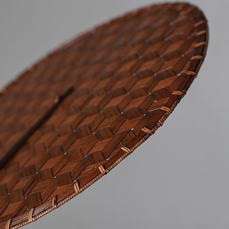 Buddha Stones Vintage Chinese Style Handmade Round Octagonal Shaped Bamboo Long Handle Fan