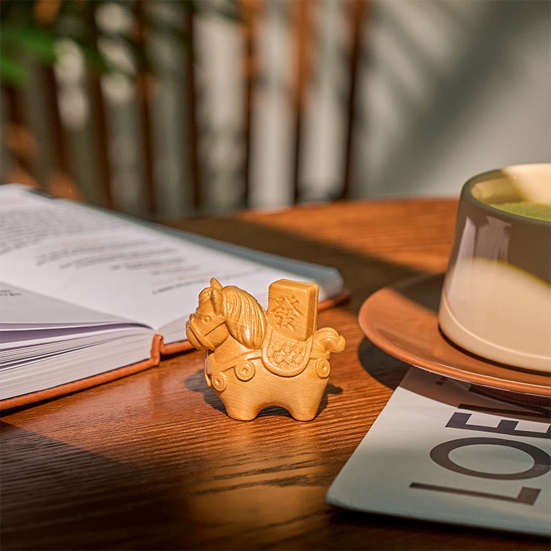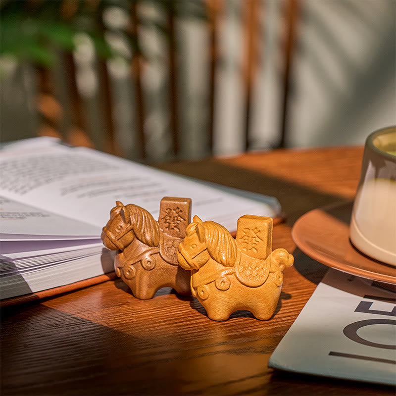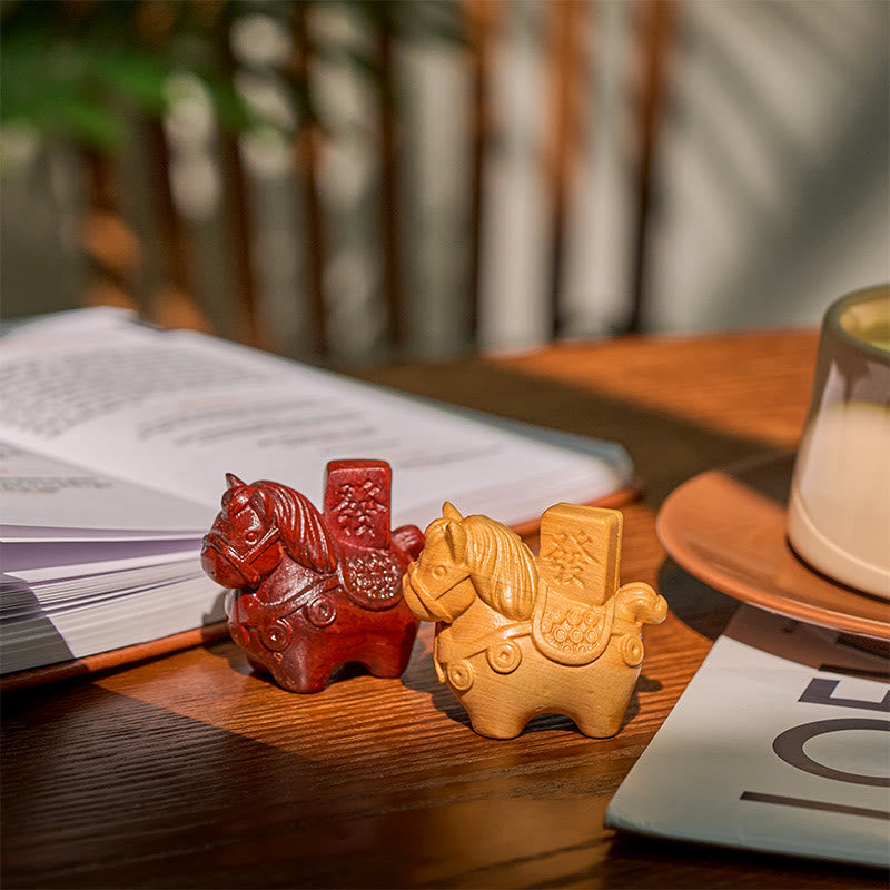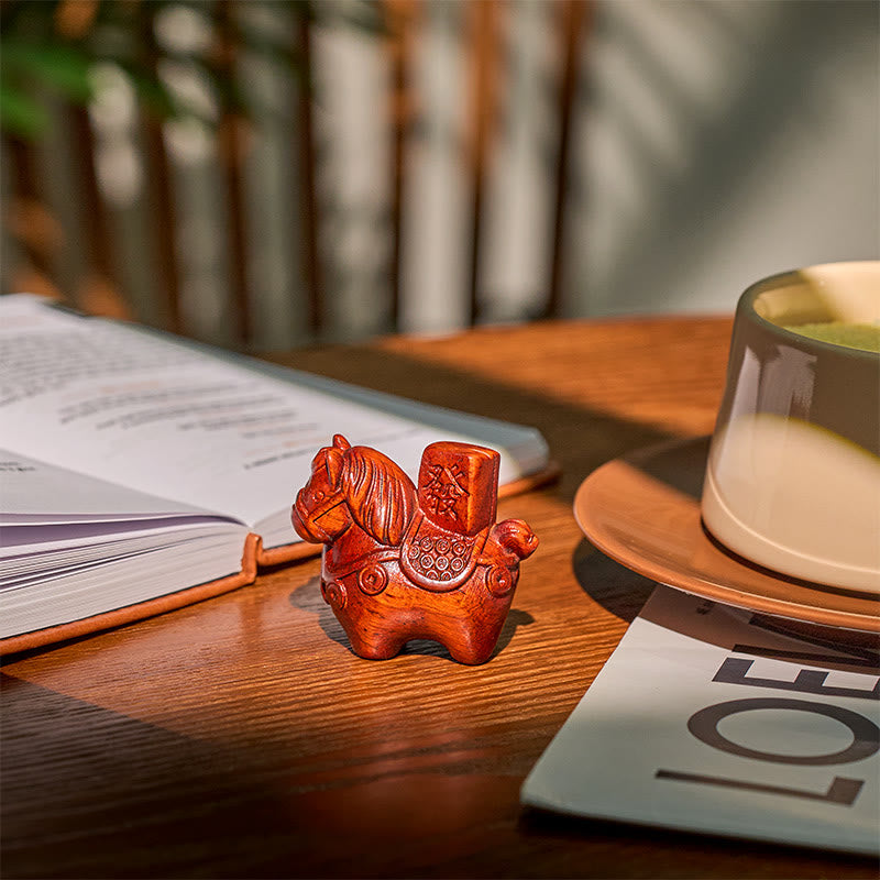 Buddha Stones Year of the Horse Get rich Green Sandalwood Small Leaf Red Sandalwood Linden Wood Animals Positive Decoration - image 1