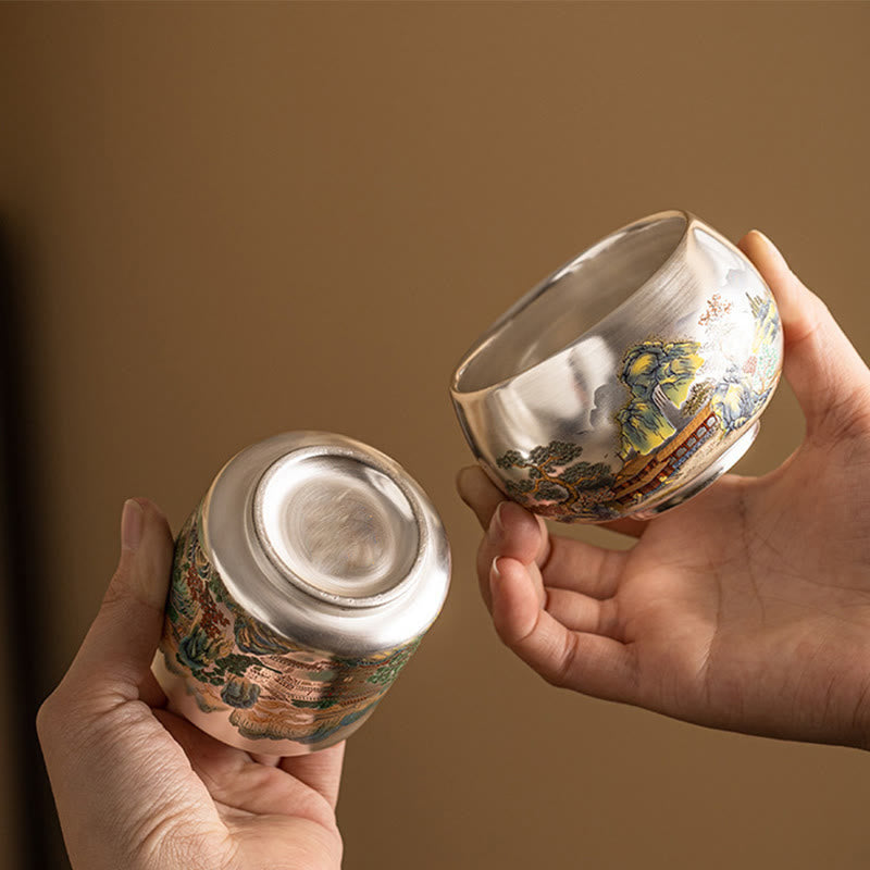 Buddha Stones Fish Lotus Seaweed Valley Mountains Pine Tree Dragon Teacup Kung Fu Tea Cup With Gift Box