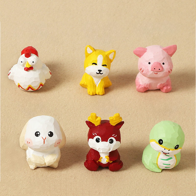 Buddha Stones Mini Small Chinese Zodiac Linden Wood Engraved Positive Home Decoration 4cm