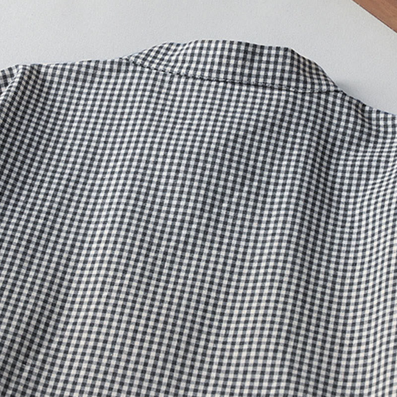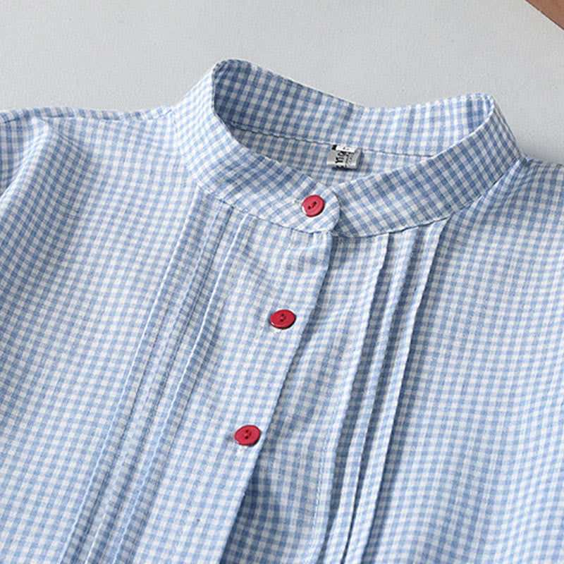 Buddha Stones Casual Plaid Pattern Long Lantern Sleeve Cotton Linen Midi Dress With Pockets