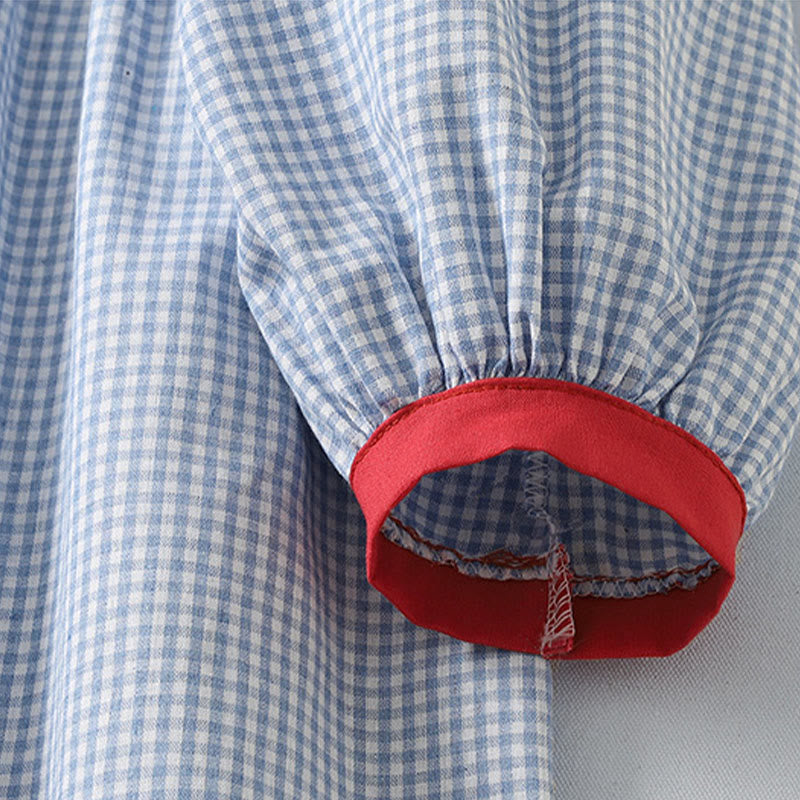 Buddha Stones Casual Plaid Pattern Long Lantern Sleeve Cotton Linen Midi Dress With Pockets - LightSkyBlue - US8-10,UK/AU12-14,EU40-42 (2XL) - image 0