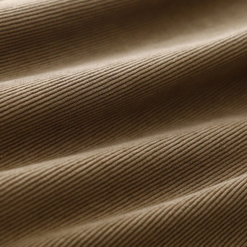 Buddha Stones Tan Solid Color Corduroy Puff Long Sleeve Midi Dress