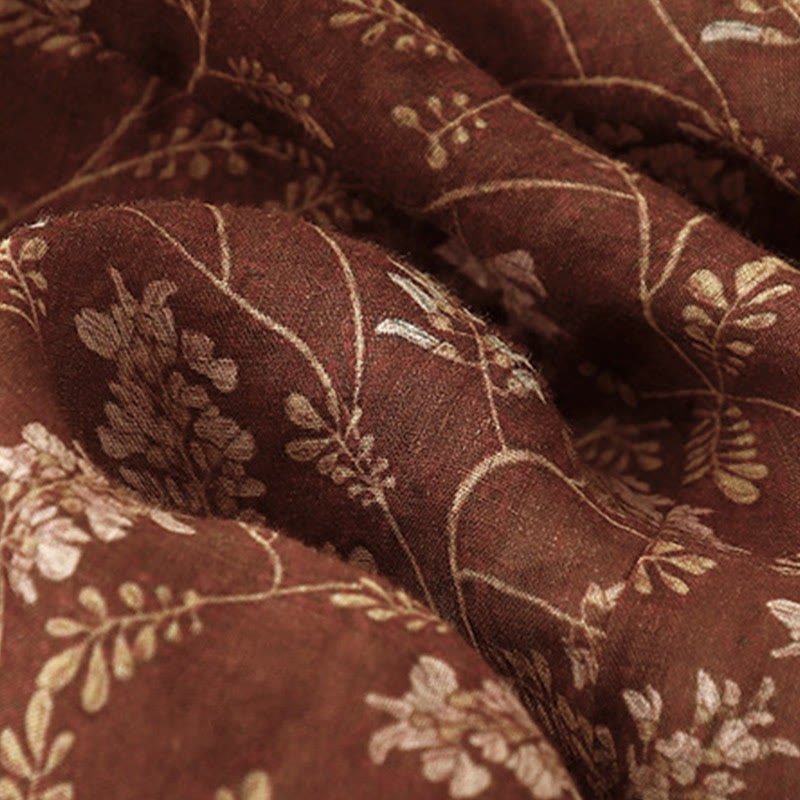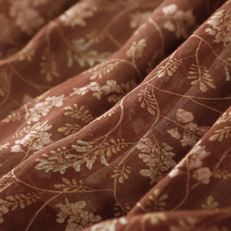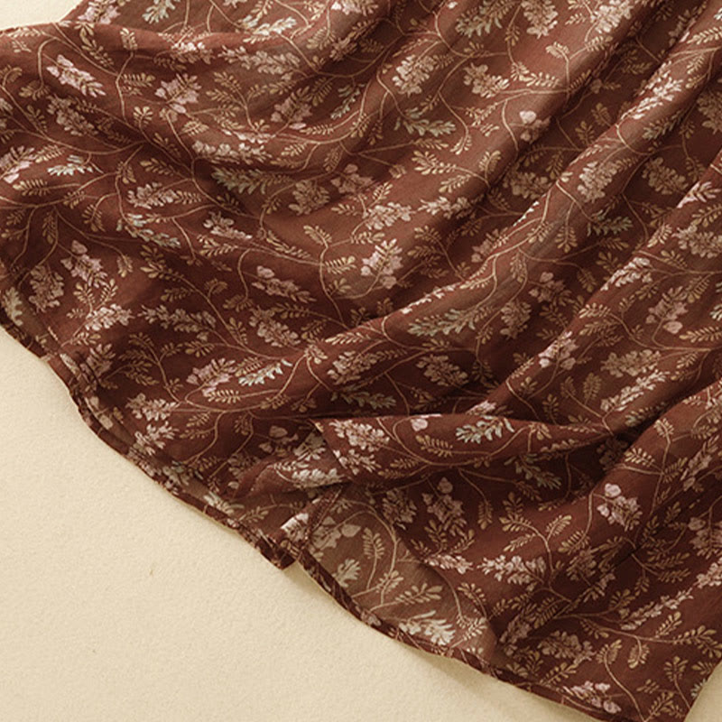 Buddha Stones Floral A-line Elastic Waist Cotton Linen Women's Skirt With Pockets - SaddleBrown - US8-10,UK/AU12-14,EU40-42 (2XL) - image 0
