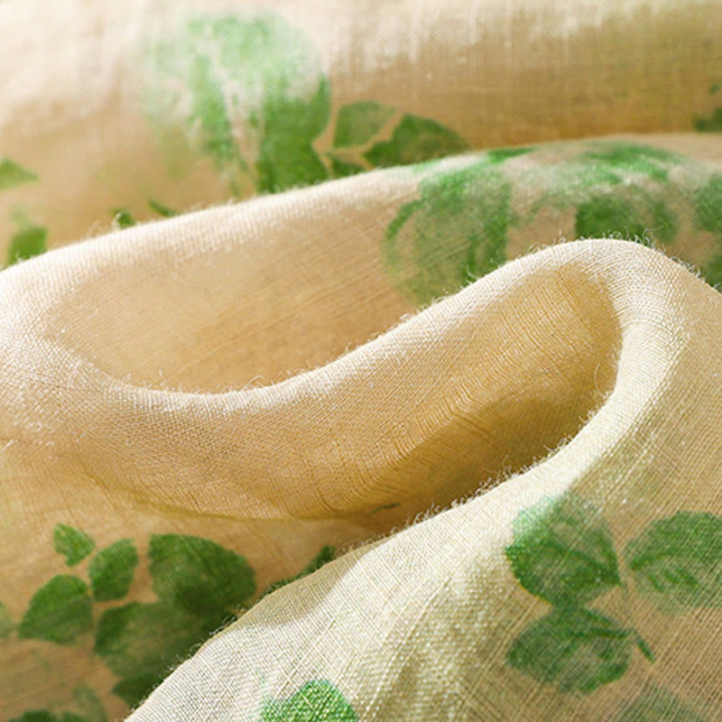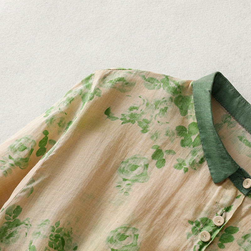 Buddha Stones Printing Buttons Drawstring High Waist Short Sleeve Cotton Midi Dress With Pockets - image 27