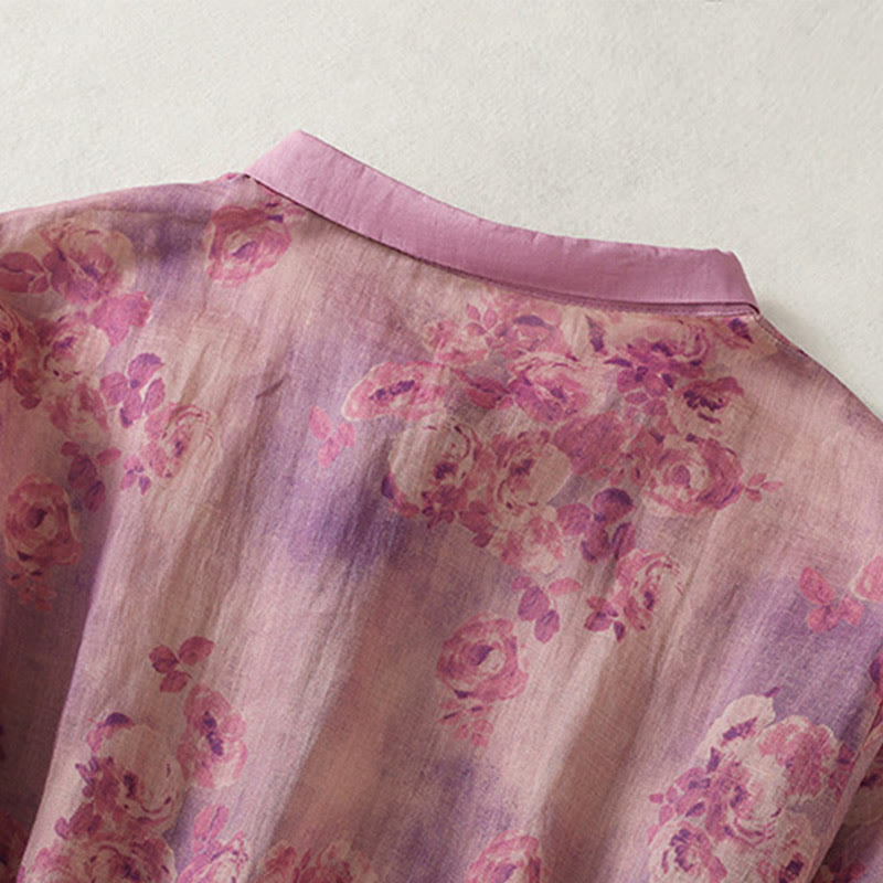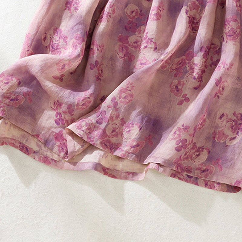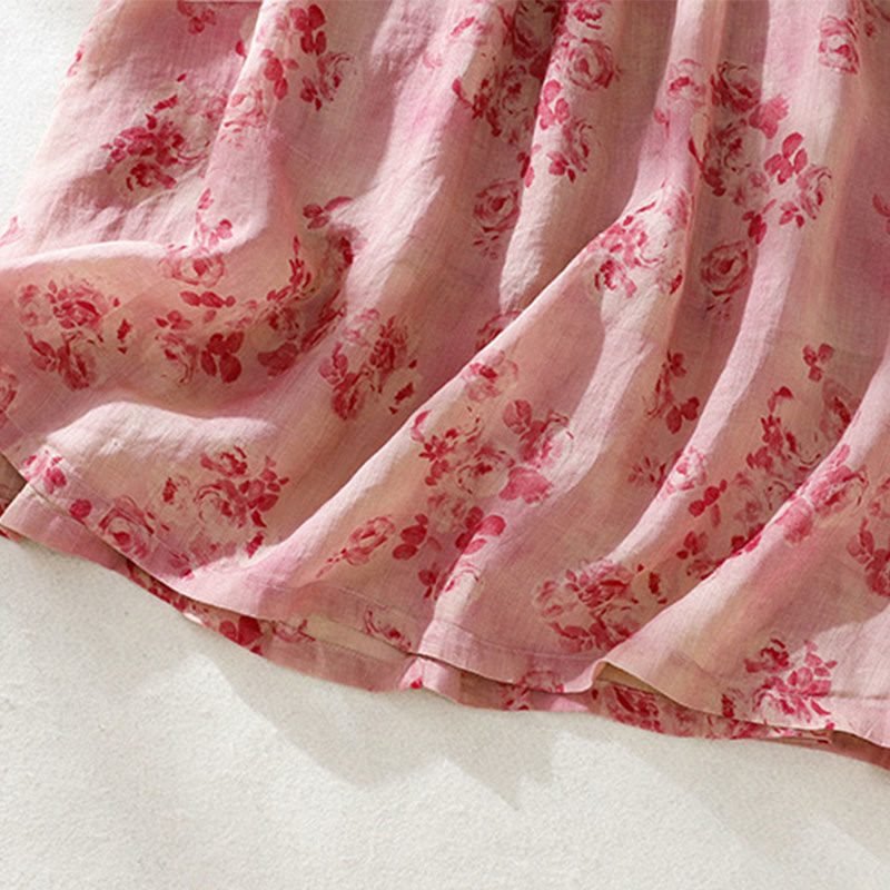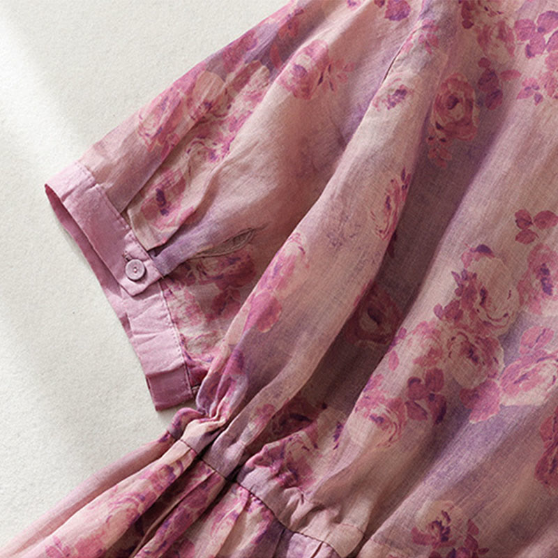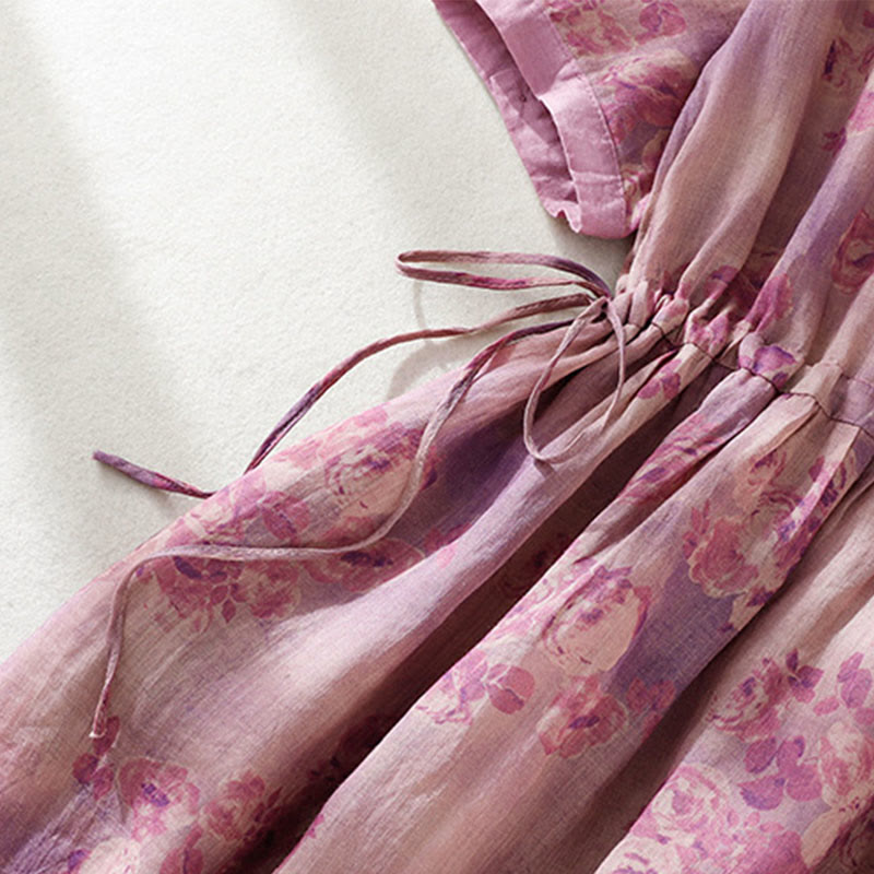 Buddha Stones Printing Buttons Drawstring High Waist Short Sleeve Cotton Midi Dress With Pockets - PaleVioletRed - US8-10,UK/AU12-14,EU40-42 (2XL) - image 20