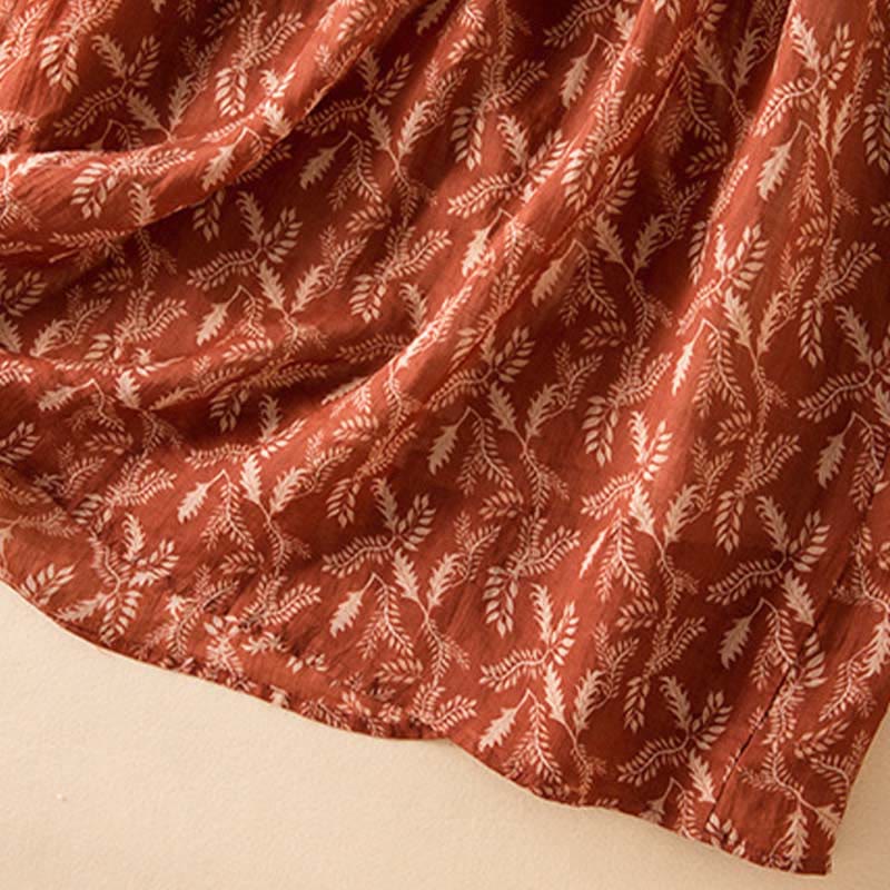 Buddha Stones Half Sleeve Color Contrast Floral Pattern Midi Dress With Pockets - FireBrick - US12,UK/AU16,EU44 (3XL) - image 20