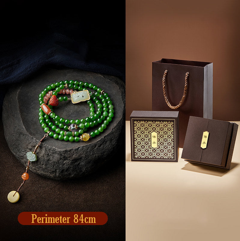 - Size: Amethyst 9 *6mm (Width*Height), Amber 9*7mm (Width*Height), Red Agate Buddha Head 8mm, Abacus Bead 6*4mm (Width*Height), Red Agate Abacus Beads 6*4mm (Width*Height), Cyan Jade Beads 6mm, Red Agate Barrel Bead 8*12mm (Width*Height), Peace Buckle 14mm, Red Agate Ruyi 14*11*7mm(Width*Height*Thickness),