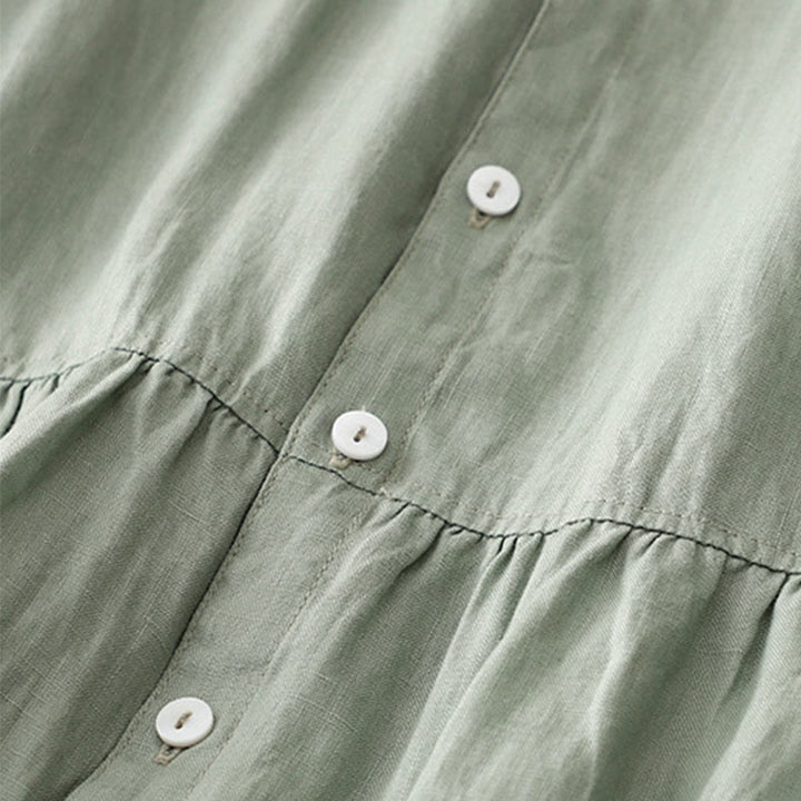 Buddha Stones Casual Plain Button Crew Ruffle Neck Short Sleeve Cotton Linen Women's Midi Dress - LightGreen - US8-10,UK/AU12-14,EU40-42 (2XL) - image 1