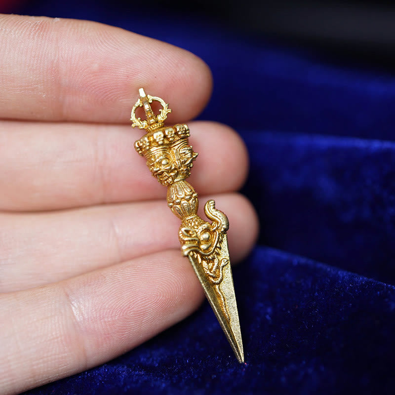The vajra (symbolizing the male principle, fitness of action) is held in the right hand and the bell (symbolizing the female principle, intelligence) in the left hand, the interaction of the two ultimately leading to enlightenment.