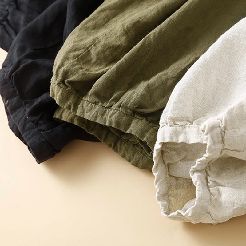Buddha Stones Commute Women's Plain Harem Capri Cotton Pants With Pockets