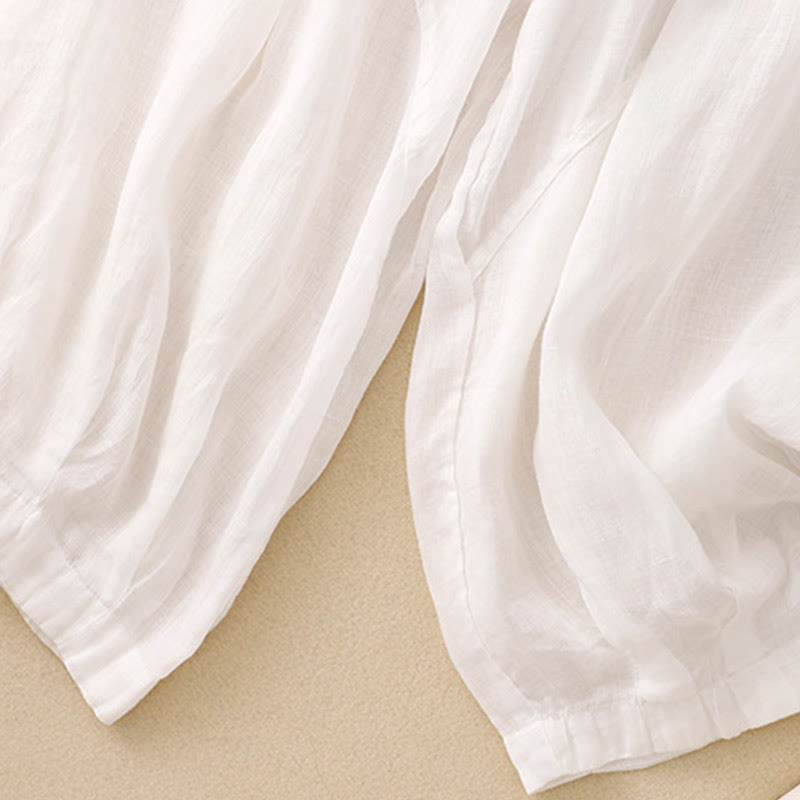 Buddha Stones Embroidered Pattern Women's Cotton Linen Harem Pants With Pockets - White - US12,UK/AU16,EU44 (3XL) - image 5