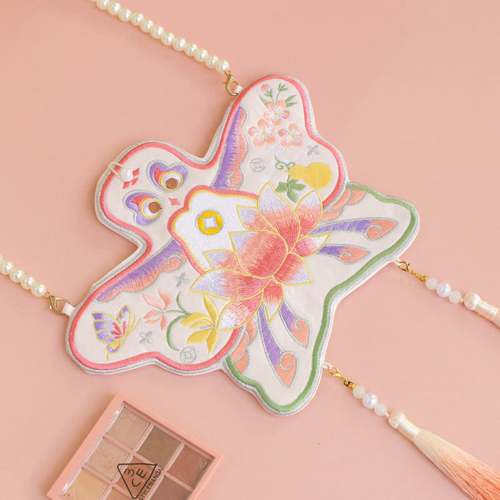 Buddha Stones Luck Embroidery Lotus Koi Fish Rabbit Flower Hanfu Bag Crossbody Bag Shoulder Bag