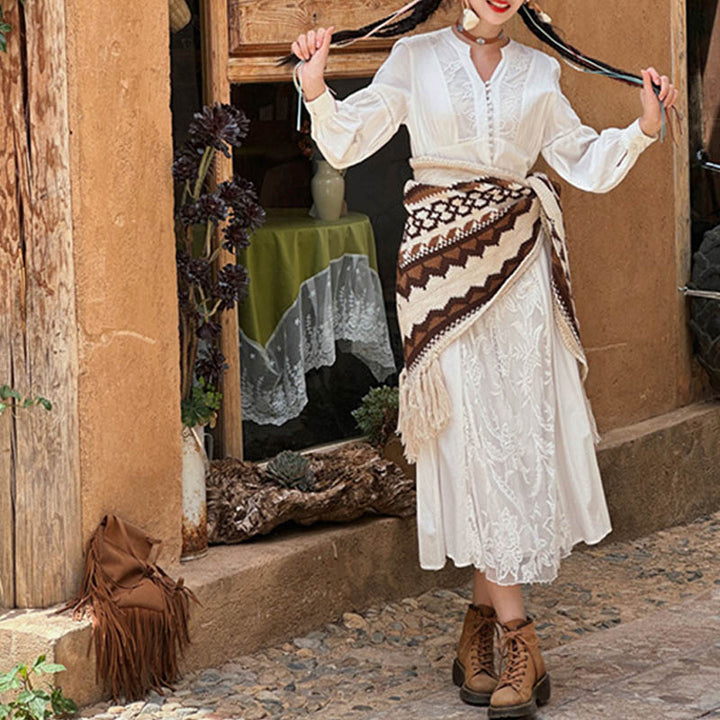 Buddha Stones Tibetan Striped Brown Beige Tassel Shawl Winter Cozy Travel Scarf Wrap
