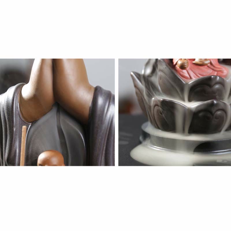 Buddha Avalokitesvara Chenrezig Ksitigarbha Ceramic Lotus Blessing Backflow Incense Burner