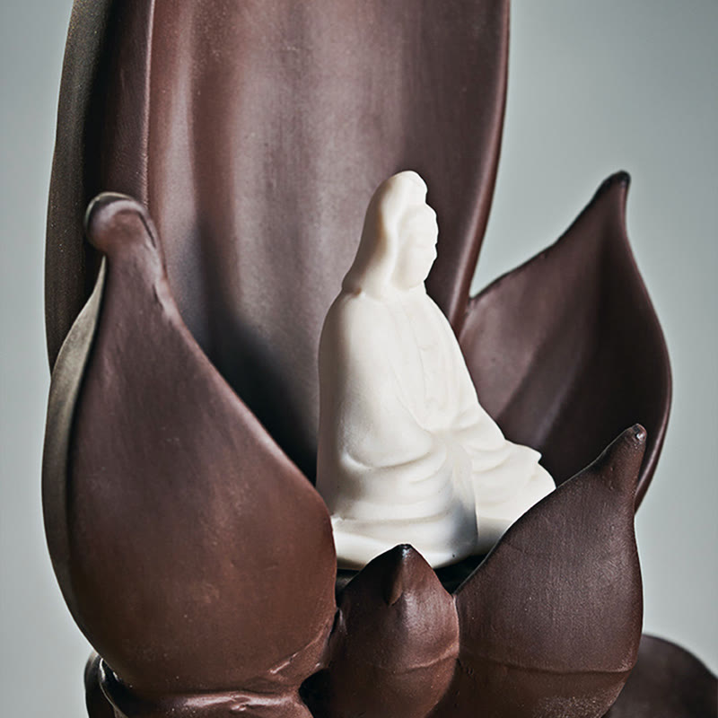 Buddha Stones Lotus Buddha Avalokitesvara Enlightenment Purple Clay Incense Burner Decoration - Lotus Avalokitesvara - image 4
