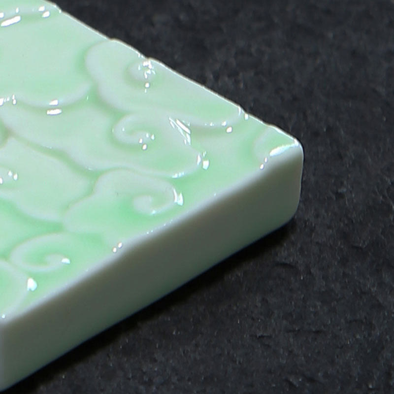 Buddha Stones Mini Auspicious Clouds Design Healing Stick Ceramic Small Incense Burner Decoration - Square Auspicious Cloud 5*5*0.5cm - Green - image 0