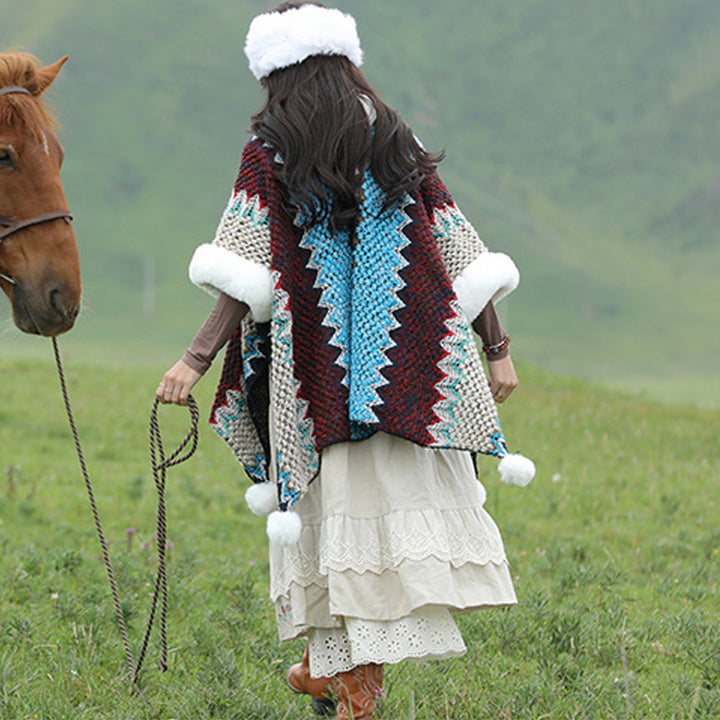 Buddha Stones Tibetan Multicolored Wavy Lines Knitted Striped Shawl Coat Winter Cozy Travel Scarf Wrap