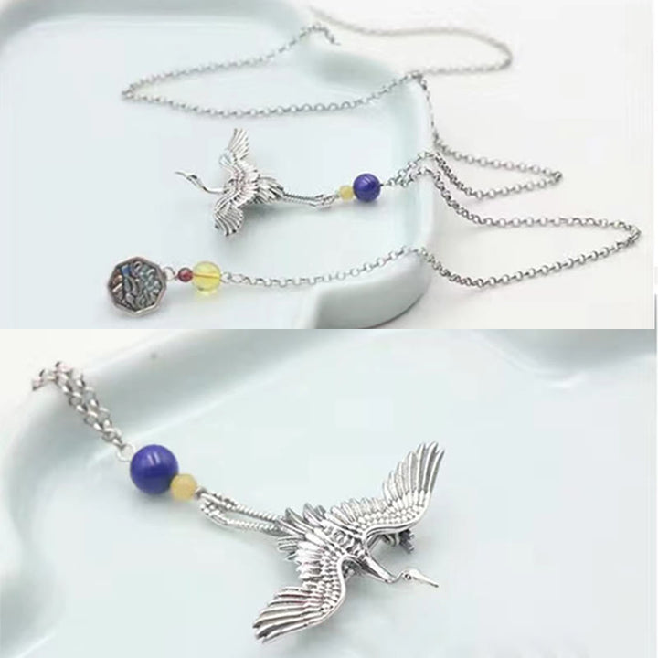 Buddha Stones Vintage Crane Happiness Copper Brooch