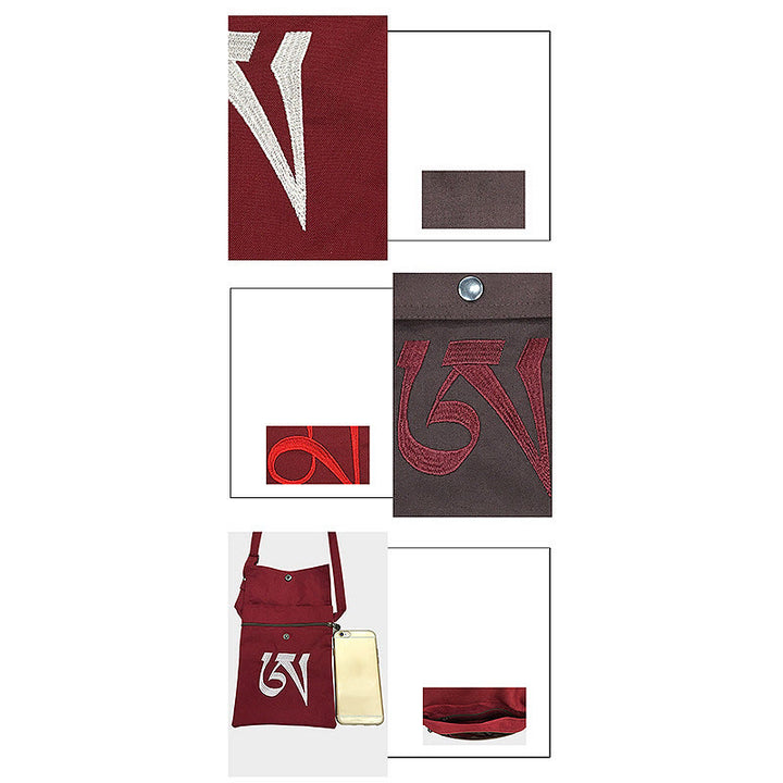 Handmade OM Mantra Embroidered Spiritual Mind Practice Cotton Crossbody Bag Shoulder Bag Cellphone Bag