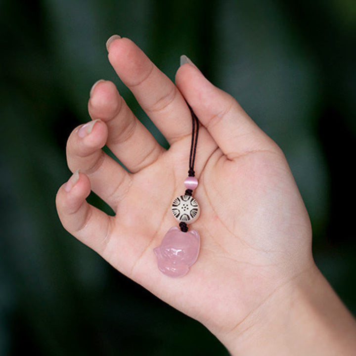 Natural Chalcedony Fox Harmony Phone Hanging Decoration