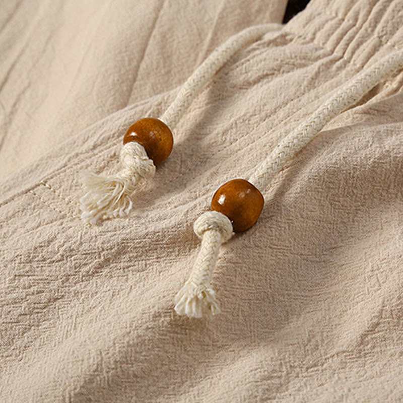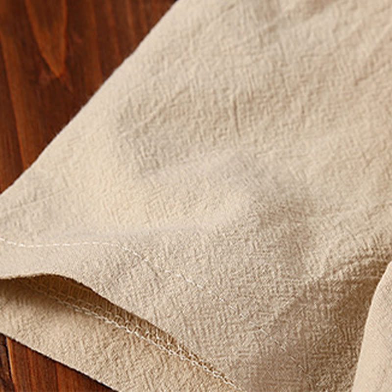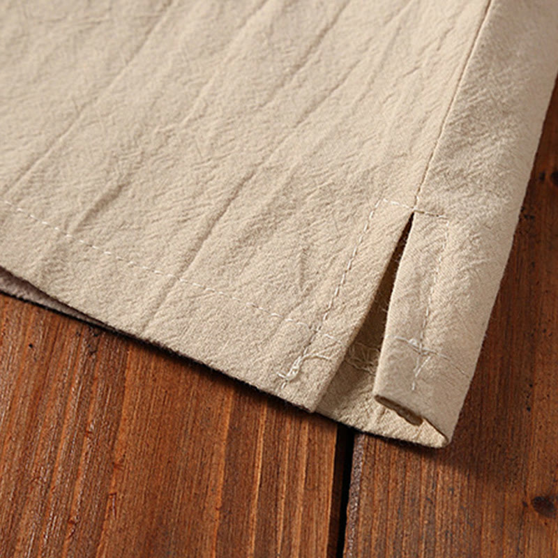 Buddha Stones 2Pcs Solid Color Frog-Button Tang Suit Cotton Linen Short Sleeve Pants Clothing Men's Set - image 10