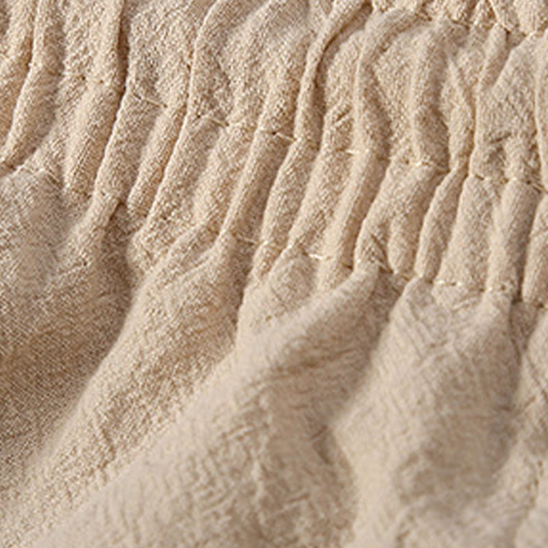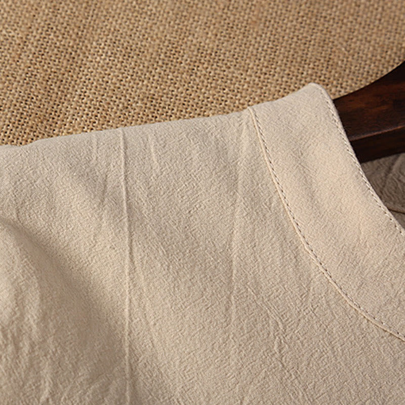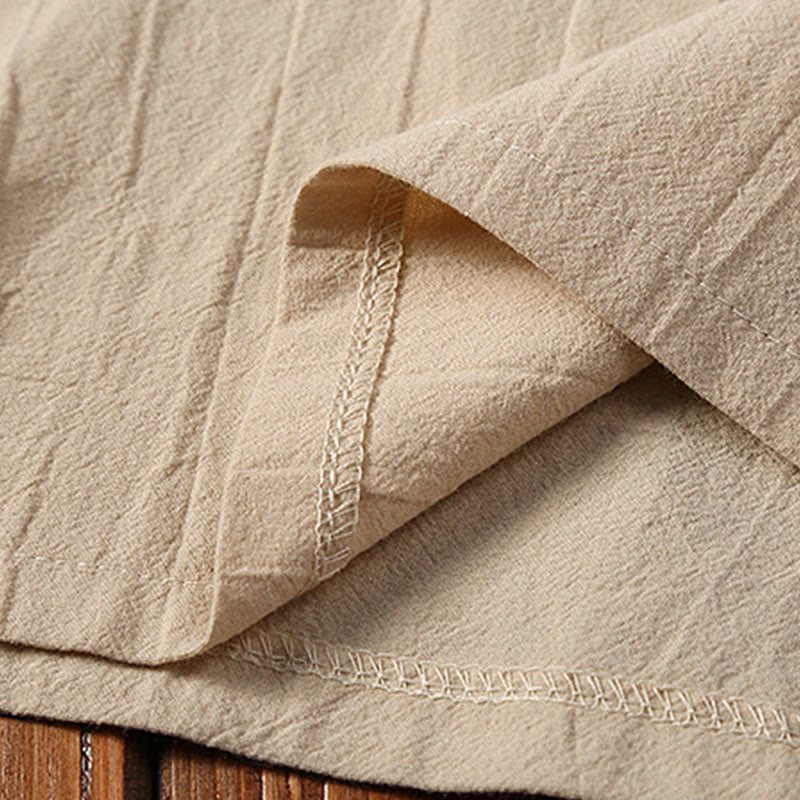 Buddha Stones 2Pcs Solid Color Frog-Button Tang Suit Cotton Linen Short Sleeve Pants Clothing Men's Set - Beige - US/UK/AU46,EU56 (5XL) - image 3