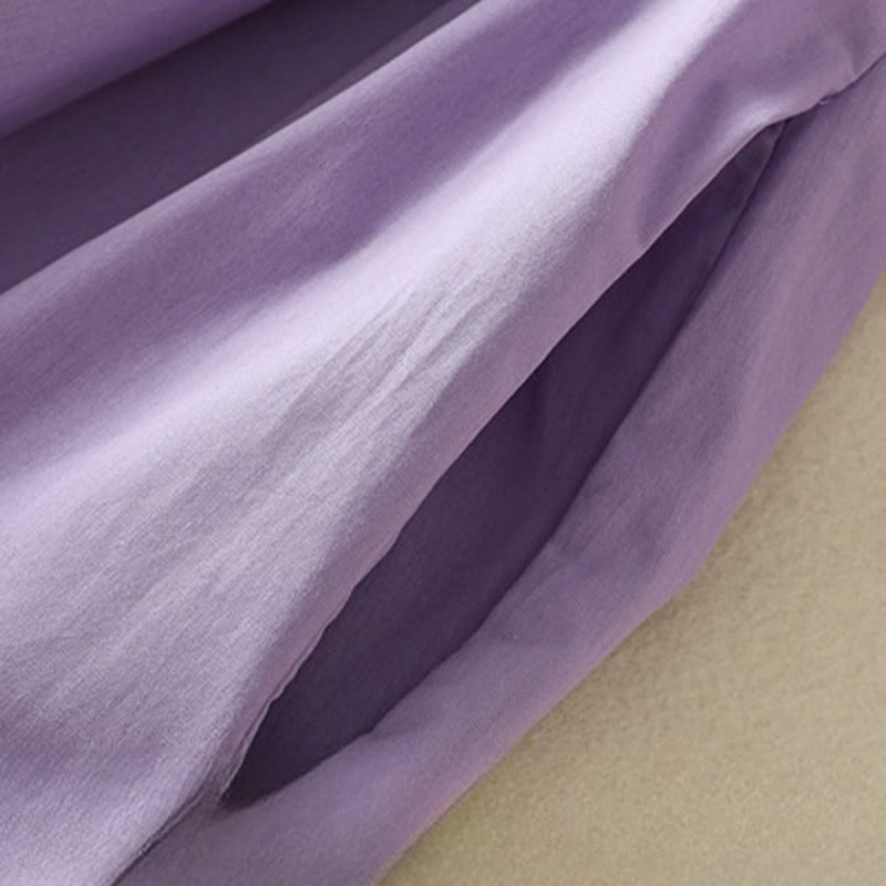 Buddha Stones Summer Orchid Embroidery Lace-Up V-Neck Half Sleeve Cotton Linen Midi Dress With Pockets - Orchid - US8-10,UK/AU12-14,EU40-42 (2XL) - image 0