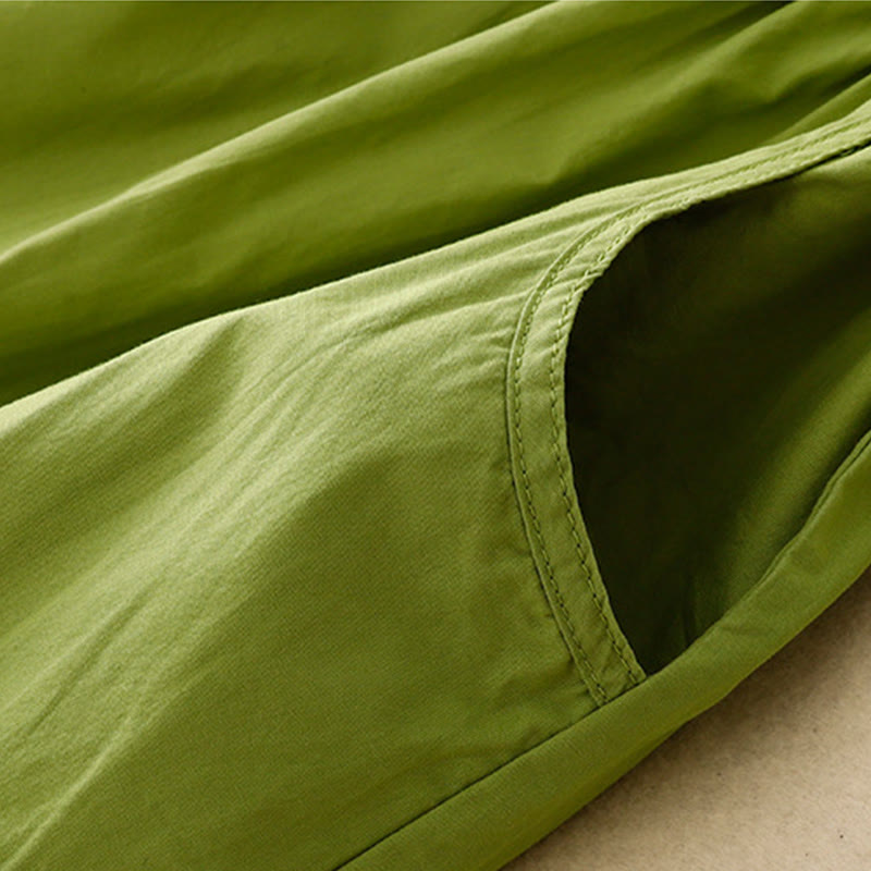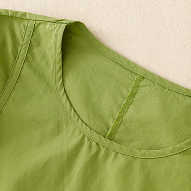 Buddha Stones Vintage Lace-Up Simple Design Cotton Linen Three Quarter Puff Sleeve Midi Dress With Pockets - YellowGreen - US12,UK/AU16,EU44 (2XL) - image 0