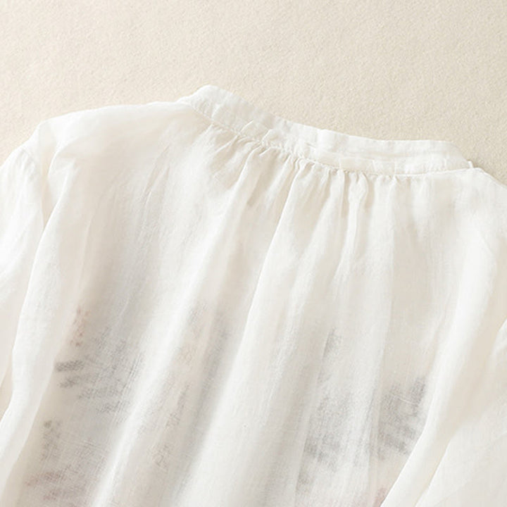 Buddha Stones Casual Artistic Embroidery Leaves Pattern Women's Cotton Linen Three Quarter Sleeve Shirt Cardigan - White - US8-10,UK/AU12-14,EU40-42 (2XL) - image 14