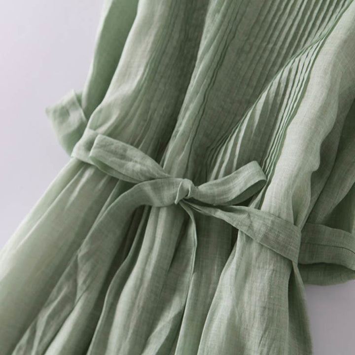 Buddha Stones Casual Lace-up Plain Crew Neck Half Sleeve Cotton Midi Dress With Pockets - DarkSeaGreen - US12,UK/AU16,EU44 (3XL) - image 20
